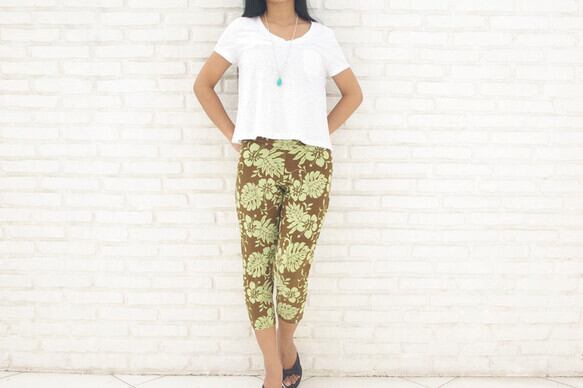 1サイズでS~Lサイズの方対応!穿いている感じがしない快適レギンスストレッチショート丈パンツ:通年使用◎ハイビスカスリーフブラングリーン | 大人輝く、毎日着たい!その時着たい!がここにあるflowernagirl(フラワーナガール)公式ファッション通販サイト