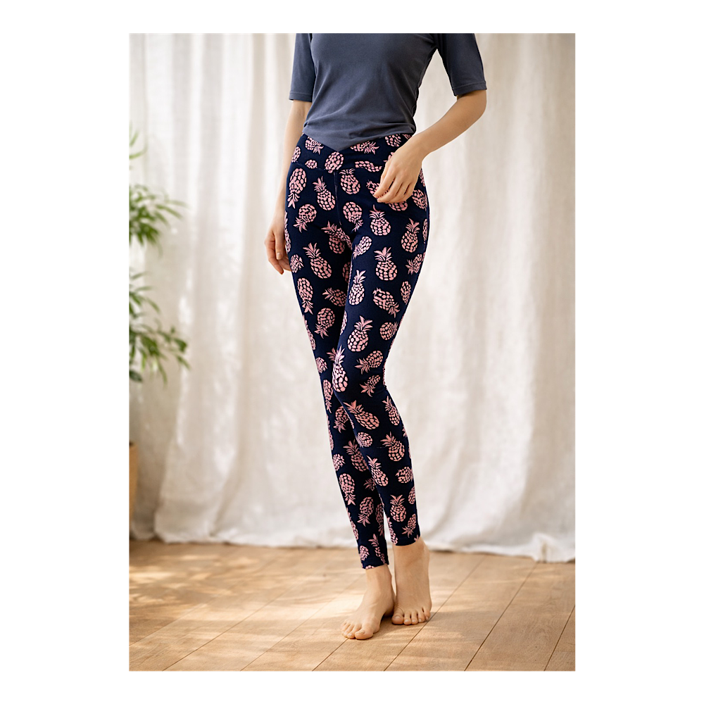 1サイズでS~Lサイズの方対応!穿いている感じがしない美脚レギンスストレッチロングパンツ【股下68㎝】通年使用◎パイナップルネイビーピンク