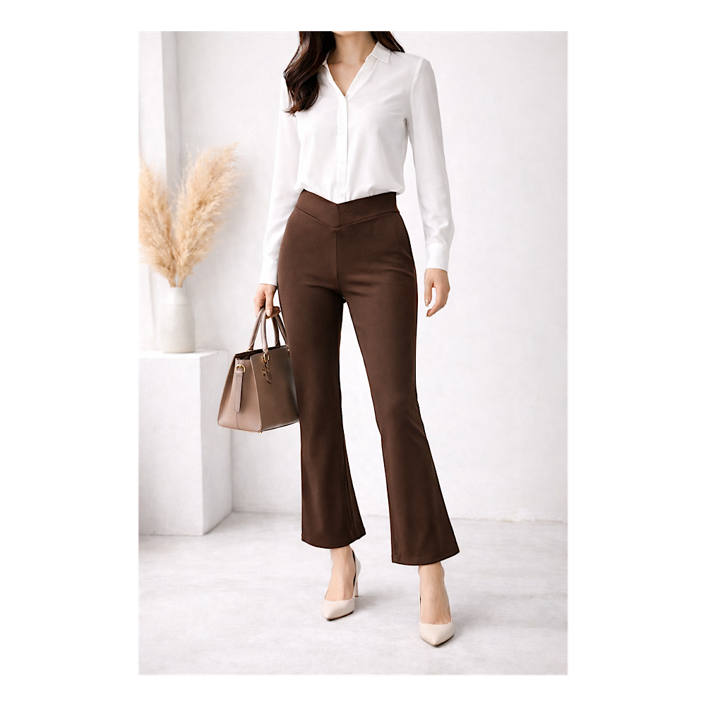 茶色深みのブラウン 美脚ストレッチ ストレートパンツ 大人女性のための快適ロング 7~13号対応 通年OK