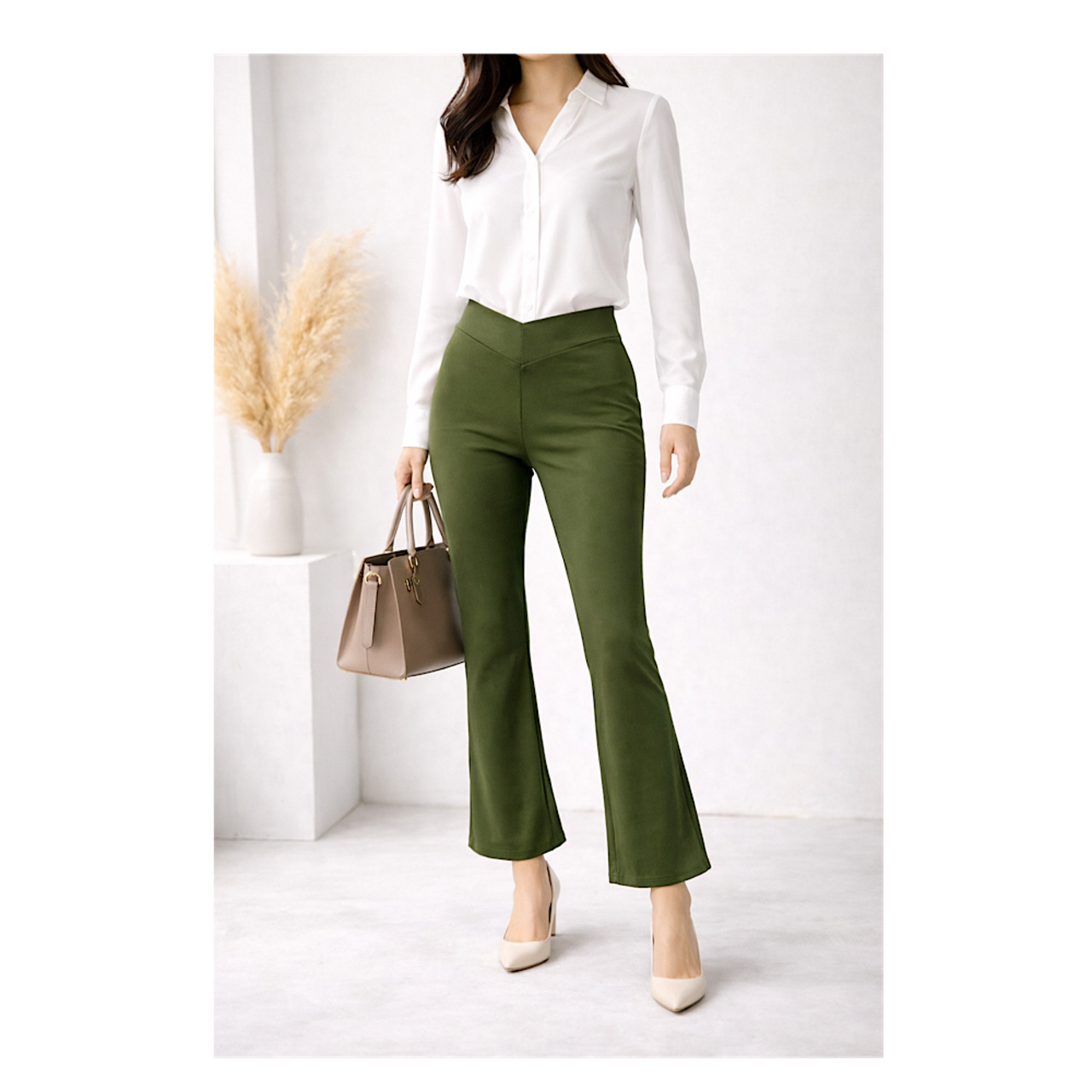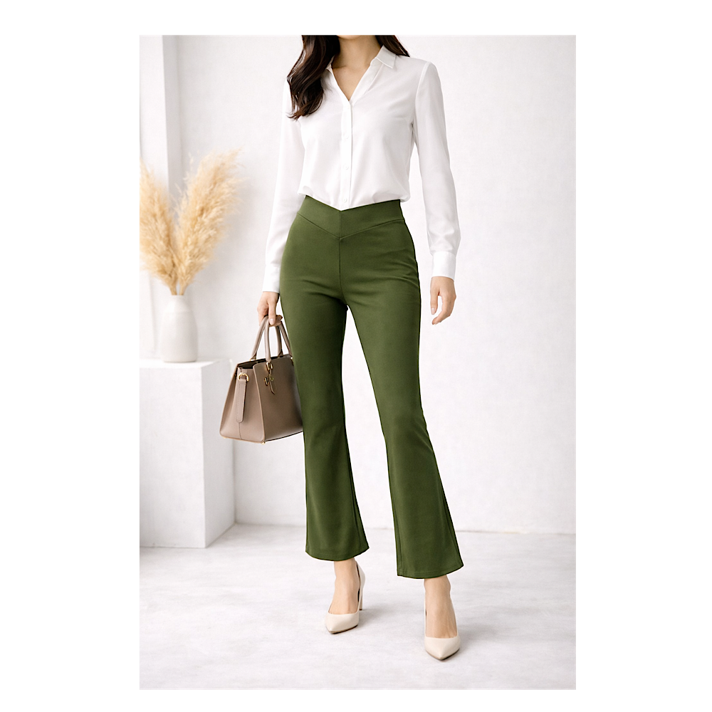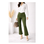深みのオリーブカーキ 美脚ストレッチ ストレートパンツ 大人女性のための快適ロング 7~13号対応 通年OK